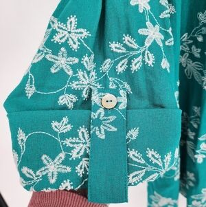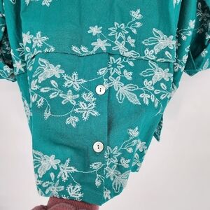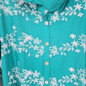 Ali Miles NWT Embroidered Button Down Linen Blend Floral Top Seafoam 3X