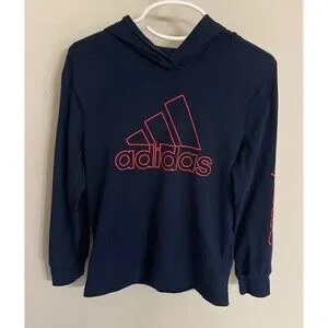 Navy Blue Adidas Boy Girl Hooded Long Sleeve Shirt, Size Youth 5, Size 5T. So nice and soft. Navy Blue & Red. Long sleeve. Says “Adidas” on the sleeve. Good condition. A nice shirt to wear underneath a soccer uniform on a chilly day.