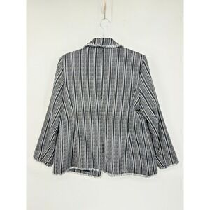 Chico's Tweed Blazer Women's 2 Black Gray Striped Polyester Long Sleeve Pockets