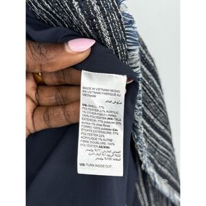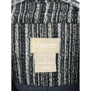 Chico's Tweed Blazer Women's 2 Black Gray Striped Polyester Long Sleeve Pockets.