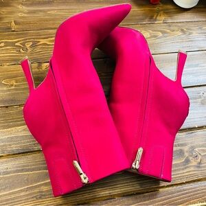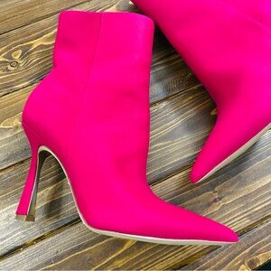 Sam Edelman Hot Pink Dollcore Genuine Leather Suede Pointed Toe Heeled Booties