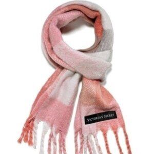 NWT/Still in Protective Plastic Victoria's Secret Plush Scarf - Blush/Grey. This soft, plush scarf features a tonal plaid design and fringe details on each end. Drape around your neck or tie in a knot for a cozy-chic look.