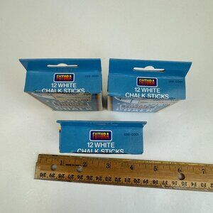 Condition: Used vintage condition. The cardboard boxes are in great collectible shape except for one that has a cut on the bottom flap of the cardboard. The original price tag sticker is attached to the front of all of them. One box is full, the other box is only missing a few chalk sticks, the last box is all used/broken chalk. SEE PHOTOS