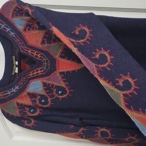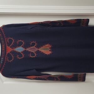 Peruvian Connection Navy and Red Long Sleeve Dress. Size XL