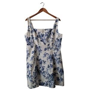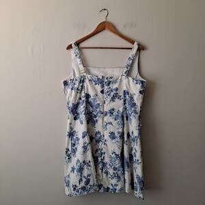 Abercrombie & Fitch Floral Dress Stretch Cotton A-Line Mini Blue & White Size XL