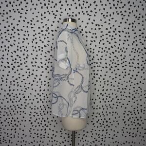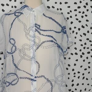 Cabi White Sheer Nautical Rope Print Short Sleeve Button Up Shirt