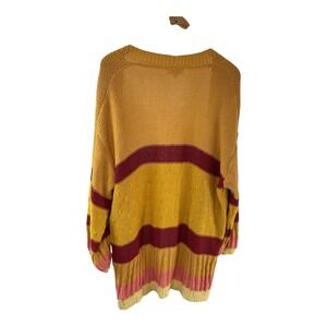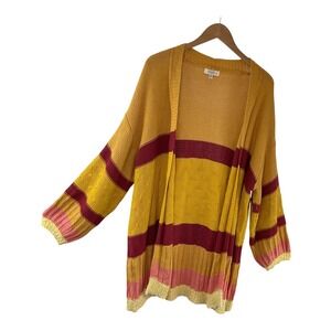 Umgee Yellow Knit Duster Cardigan Striped Open Front Bohemian Sweater