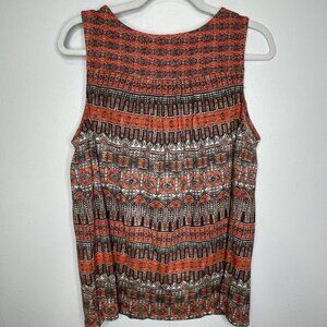 Lucky Brand Boho Top M Sleeveless V-Neck Cord Western Southwestern Tribal Orange