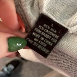 525 America Silk & Cashmere Sweater Cardigan Detachable Rabbit Fur Collar Gray