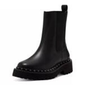 Sleek black booties with studded detailing. Elevate your look with these stylish shoes.