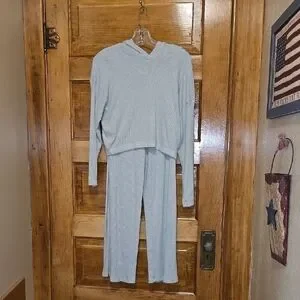 Experience ultimate comfort with this H&M blue loungewear set, featuring a cozy hooded top and matching pants. Crafted from soft materials, this set is perfect for relaxing at home or casual outings.