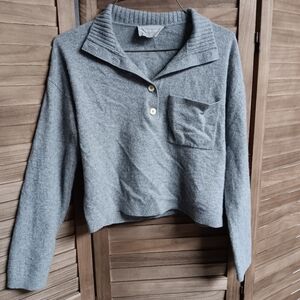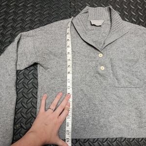 cashmere wool blend sweater is luxurious and soft. fibers tag is missing but after some research i discovered that this sweater is 60% cashmere 40% wool. light Grey color.