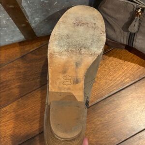 Pre-owned and gently worn. Some normal suede wear/scuffing on the toe and outer areas (shown in photos), but plenty of life left. Soles and heels in good condition. Soft, high-quality suede with a comfortable, supportive heel.