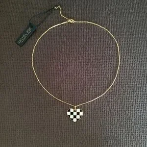 Brand new with tags Rachel Zoe black🖤 and white checkered enamel heart♥️ pendant necklace