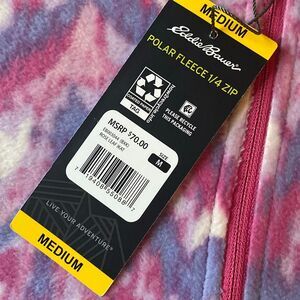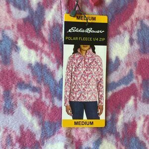 EDDIE BAUER Women Size M Pink Abstract 1/4 Zip Polar Fleece Pullover NWT