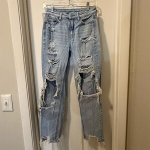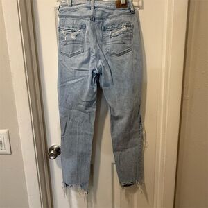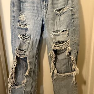 American Eagle Women's High Rise Distressed Grunge Mom Jeans Size 0 Blue