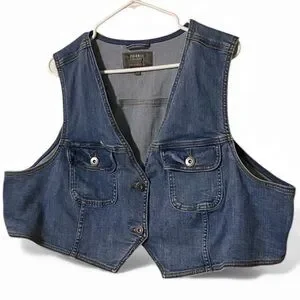 Torrid Denim Button-up Short Vest Women 4X Blue Pockets Distressed Western Rodeo