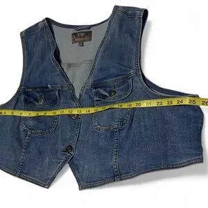 The Torrid Denim Button-up Short Vest is a stylish and versatile piece perfect for any season. Made of 98% Cotton and 2% Spandex, this sleeveless vest features a solid blue color with a distressed denim finish, giving it a Western and classic cowgirl theme. The regular fit and plus size make it comfortable and flattering for women. With a button closure and chest pockets, this vest is both practical and fashionable, making it a great addition to any wardrobe for the modern cowgirl.