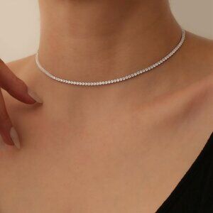 Tennis Necklace Brass 2.5mm 3mm 4mm Cubic Zirconia Dainty Bridal Jewelry