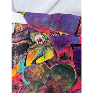 Vintage Women's Petite Sophisticate abstract Blouse Purple Multicolor