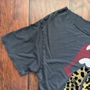 Free People x Daydreamer Rolling Stones Leopard Band T-shirt Sz S Rock Metal