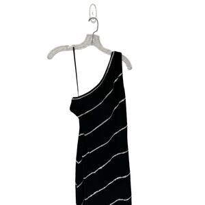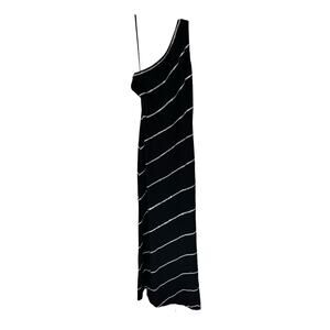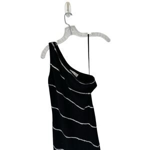 St. John Dress Size 6 Evening VTG Black Silver One Shoulder Santana Knit Maxi