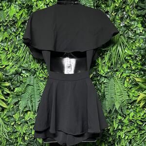 LULUS Romper Women XS Black Aldrin Ruffle Neck Skort Tie Waist Jumpsuit 2775