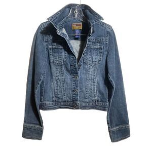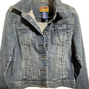 Blue Asphalt Denim Jean Jacket Women's size Medium 90s Retro Coat Trucker Y2K