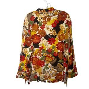 Chico’s Design Silk Blouse Size 3 (XL)Vintage Floral Embellished Shirt Button Front Boho