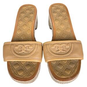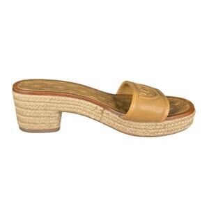 Tory Burch Women’s Fleming Tan Leather Espadrille Slide Sandal Size US 6.5