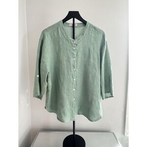 Full Stone Linen Shirt 2XL Green Button Front Italy Made Relaxed Coastal Casual. Condition is Pre-owned - Excellent. Shipped with USPS Ground Advantage.