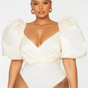 Elegant cream blouse bodysuit with dramatic puff sleeves. Perfect for a chic look. Runs big more like a 26