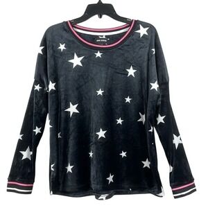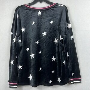 Room Service Womens Long Sleeve Velour Pajama/Lounge Top Size XL Black W/Stars