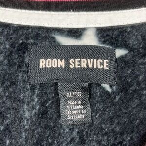 Room Service Womens Long Sleeve Velour Pajama/Lounge Top Size XL Black W/Stars. This top is in excellent pre-owned condition with no rips, stains, tears or holes. See pictures for condition and measurements. Comes from a smoke free home. Message with any questions.