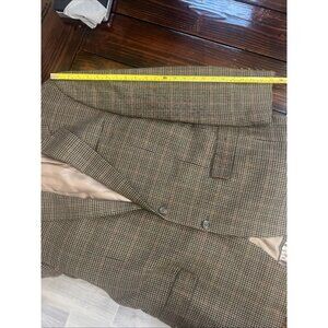 This Polo Ralph Lauren Houndstooth 100% Lambs Wool Sports Blazer Jacket in Size 44R is a stylish and classic piece for any man's wardrobe. The mid-length jacket features a brown houndstooth pattern with a silk lining, making it suitable for various occasions such as travel, formal events, and business meetings. The button closure and regular fit provide a comfortable and polished look, while the knit fabric type adds a touch of sophistication. This blazer is a versatile and timeless addition to any man's outerwear collection.