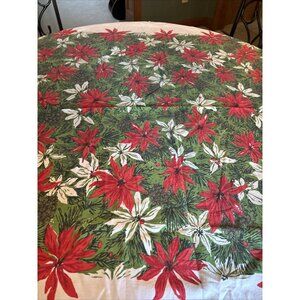 Vintage Poinsettia Cotton Tablecloth 62 X 49 Red Green & White Holiday Christmas