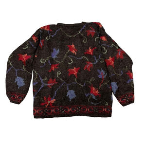 Vintage Icelandic Design Gray Floral Wool Zip Up Lined Cardigan Coat Size Medium
