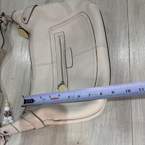 Chic Coach shoulder bag in off-white leather. Stylish and practical for daily use.