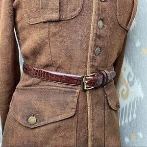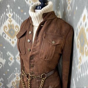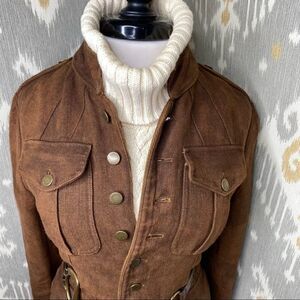 Beautiful made in Italy vintage effect brown linen utilitarian cavalry look Winslow jacket.