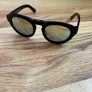 Trendy and durable, these black circular sunglasses with mirror lenses are perfect for sunny days. Polarized! Some scratching—shown in photos. Great condition otherwise!