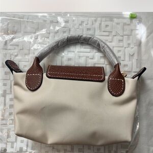 Chic Longchamp mini bag in cream with brown accents. Ideal for stylish outings.
