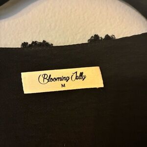 Blooming Jelly Black Polka Dot Chiffon Shift Dress V-Neck Ruffle Lined Sz M