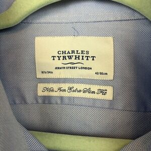 Charles Tyrwhitt Dress Shirt Mens 16.5 34 Blue Non Iron Extra Slim Fit Cotton