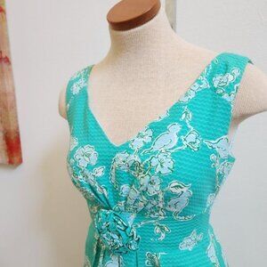 Lilly Pulitzer Parker Dress Birds & Bees Lagoon Green Rossette Mini Size…