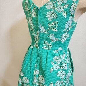 Pre-owned Lilly Pulitzer Parker Dress Birds & Bees Lagoon Green Rossette Mini, 2 side pockets.