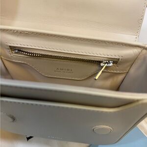 Chic AMIRI mini bag in white. Features signature logo detail. Ideal for stylish outings.
