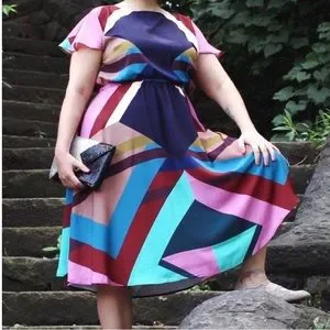 Eloquii Multi Color Geometric MIDI Dress Size 14