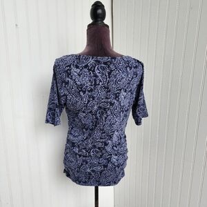 Motherhood Maternity Short Sleeve Top Womens Blue Paisley Round Hem Soft Modal M