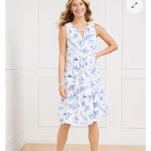 Talbots LINEN BLEND SWING DRESS - OCEAN FLORA BWT Sz M