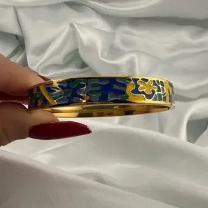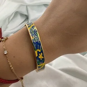 Multicolour Gold modern art blue and yellow Stainless steel cuff bracelet